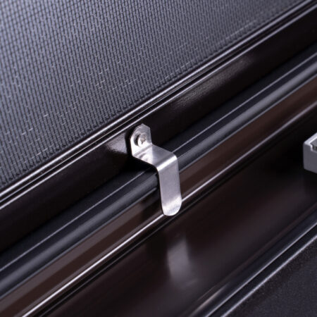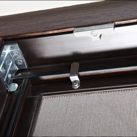 Zainstalowanie moskitiery nie wymaga trwałej ingerencji w strukturę okna i profilu. Jej montaż odbywa się za pomocą specjalnych, ruchomych zaczepów.
