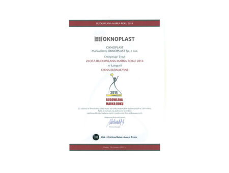 Wyróżnienie przyznawane jest na podstawie badań konsumenckich TNS OBOP firmom, które są najchętniej wybierane i rekomendowane przez Polaków. OKNOPLAST-Kraków otrzymał nagrodę w kategorii „Branża budowlana”.