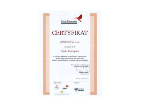 Celem przedsięwzięcia było nagrodzenie tych przedsiębiorstw, które w szczególny sposób stały się motorem dla polskiej gospodarki za sprawą znaczących sukcesów na rynkach zagranicznych. W przypadku OKNOPLAST był to już kolejny raz, kiedy firma została doceniona w tym zakresie, poprzednio została ona uhonorowana Czempionem bowiem w 2013 roku.