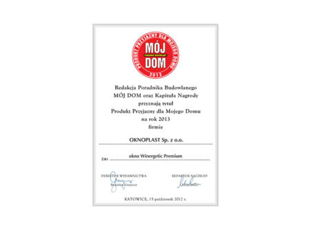 Produkt Przyjazny Dla Mojego Domu 2013 dla okna Winergetic Premium