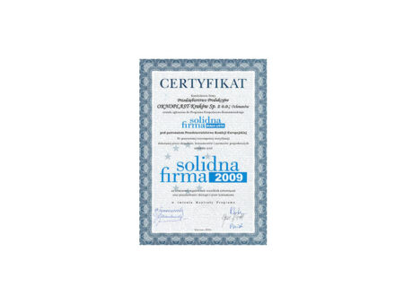 Wyróżnienie przyznawane przez Kapitułę Programu Gospodarczo-Konsumenckiego pod patronatem Przedstawicielstwa Komisji Europejskiej za terminowe regulowanie wszelkich zobowiązań wobec Klientów i Kontrahentów, oraz poszanowanie ekologii i praw konsumenta.