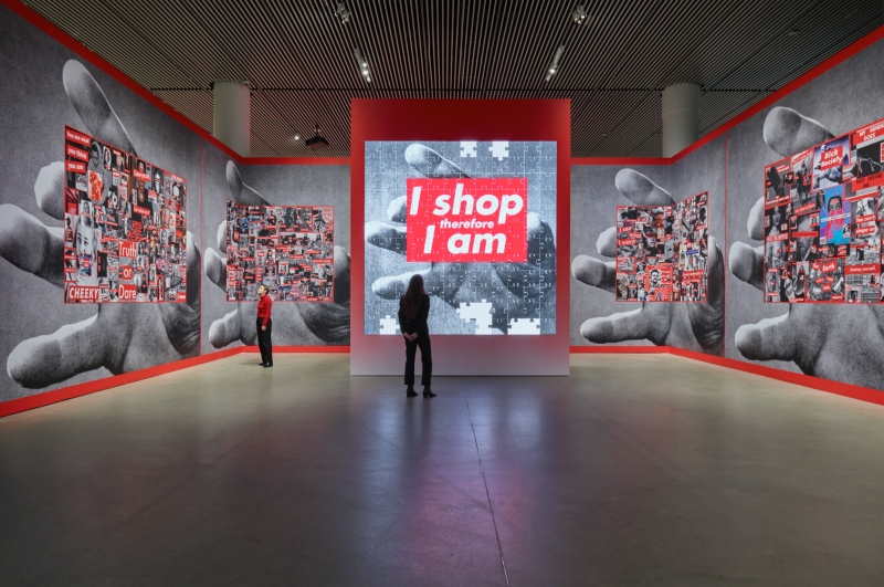 W Bilbao Kruger sięga też po LED-y i dźwięk przestrzenny, tworząc instalacje, które całkowicie zmieniają charakter wnętrz muzeum. To wystawa, która fizycznie angażuje odwiedzających – nie tylko estetycznie, ale też emocjonalnie. Jej prace pojawiają się nie tylko w salach muzeum, ale też na zewnątrz – na fasadzie budynku i w przestrzeni publicznej. To sztuka, która wchodzi z widzem w bezpośredni dialog i nie pozwala pozostać biernym.