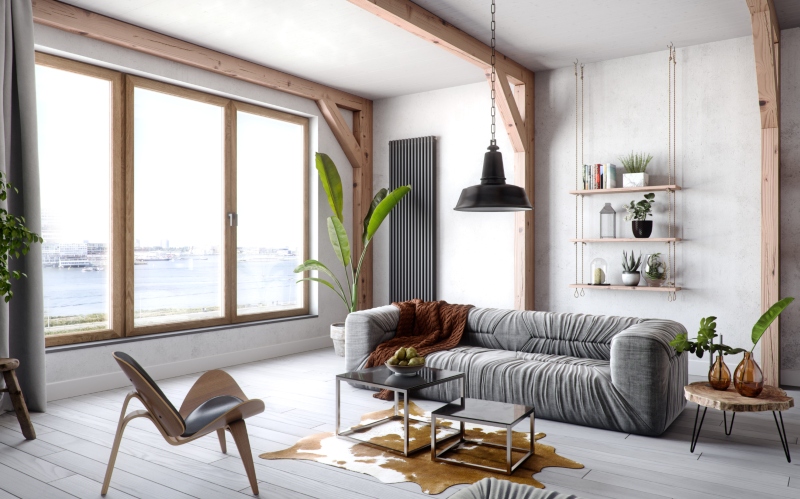 Przy tworzeniu aranżacji pod uwagę brane są lokalizacja nieruchomości i charakter środowiska zewnętrznego. Do dekoracji używane są więc np. występujące lokalnie materiały wykończeniowe. Stosowane są także okna o dużych przeszkleniach i cienkich ramach, takie jak np. OKNOPLAST Prismatic, które pozwalają na „wejście” świata zewnętrznego do wnętrz.