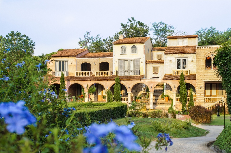 Szukając gustownych wnętrz filmowych, warto obejrzeć klasyczny już film „Pod słońcem Toskanii”. W położonej w okolicach Cortony włoskiej willi Bramasole bohaterka grana przez Diane Lane pod wpływem impulsu kupuje wiejską posiadłość do remontu. Jest tu się czym zachwycać, mimo że nieruchomość wymaga sporo pracy. Z zewnątrz widzimy typową toskańską bryłę piętrowego budynku z kopertowym dachem z terakotową dachówką, uwagę przykuwa też wyblakła od słońca brzoskwiniowa barwa tynków oraz drewniana stolarka okienna z zielonymi okiennicami.
