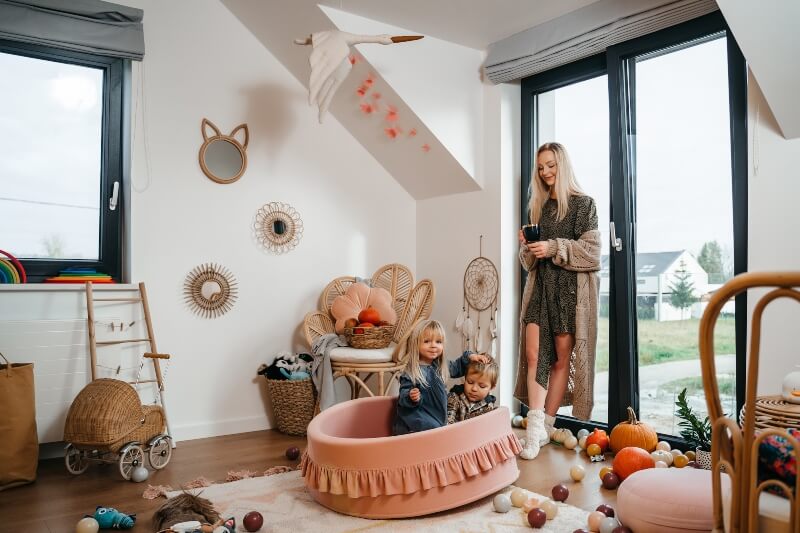 Wschód i południowy wschód to idealne kierunki dla zlokalizowania w domu sypialni – zarówno przeznaczonej dla dorosłych, jak i dla dzieci. Poranki rozpoczynane z promieniami słońca nastrajają optymistycznie do wyzwań całego dnia, ale też… ułatwiają pobudkę. Pokoje dziecinne i sypialnie rodziców z oknami wychodzącymi na wschód oświetlone są dobrze przez cały ranek i wczesne popołudnie, co kluczowe jest zwłaszcza w weekendy, gdy uczniowie nie idą do szkoły, a dorośli do pracy.