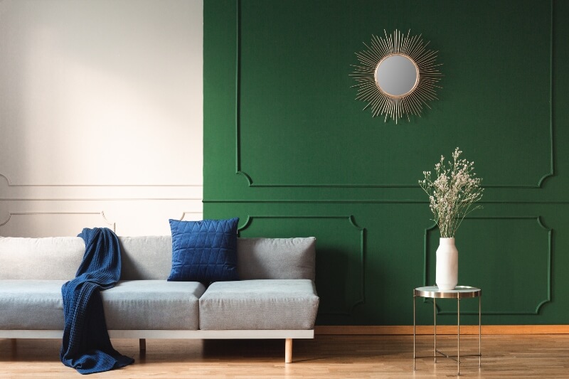 Podstawą tej techniki jest użycie dwóch kolorów, które mogą należeć do tej samej rodziny (np. dwa odcienie zieleni) lub być zupełnie różne, ale dobrze ze sobą współgrać (np. granatowy i musztardowy odcień żółtego). Kluczem do sukcesu jest spójność i harmonia – barwy muszą się wzajemnie uzupełniać, a nie konkurować ze sobą. Co ważne, double drenching zakłada całkowite odrzucenie bieli. Każda powierzchnia w pomieszczeniu powinna być pokryta intensywnym kolorem.