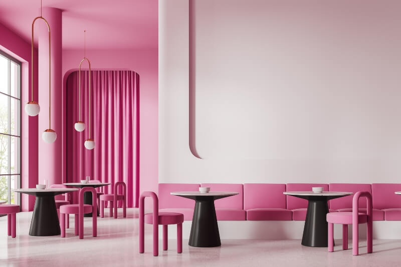 Surowość i nieformalność wnętrz industrialnych świetnie współgrają z odważnymi kolorami charakterystycznymi dla double drenching. Zestawienie grafitowego z ceglastym czerwonym doskonale podkreśla surowe wykończenia, takie jak betonowe ściany czy stalowe elementy konstrukcyjne.