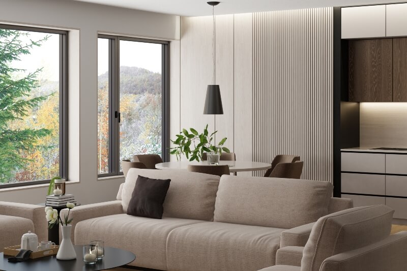 - Pamiętaj, aby duże elementy techniczne, jak np. ramy okien, utrzymywać w neutralnej bieli lub delikatnej szarości, by nie zakłócać subtelnego kontrastu.