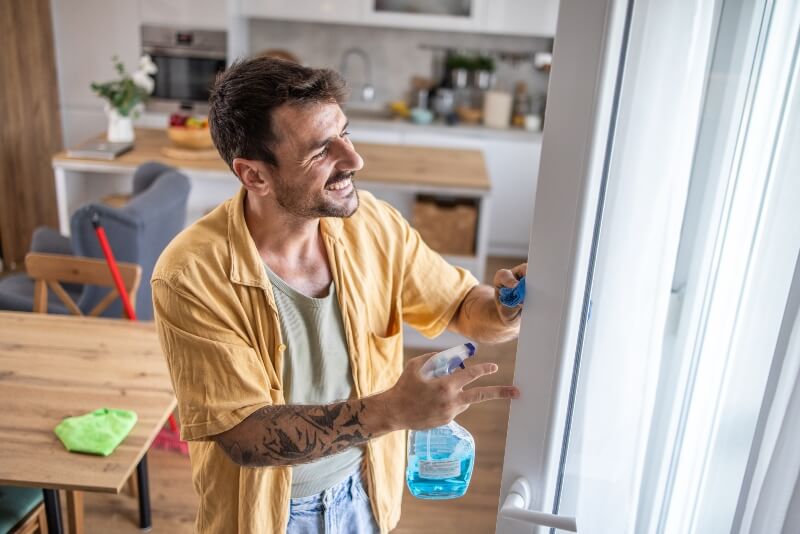 - Mycie szyb i ram – stosuj wyłącznie delikatne, neutralne środki czyszczące. Unikaj rozpuszczalników i ostrych narzędzi, które mogłyby porysować profile PVC lub aluminiowe.
