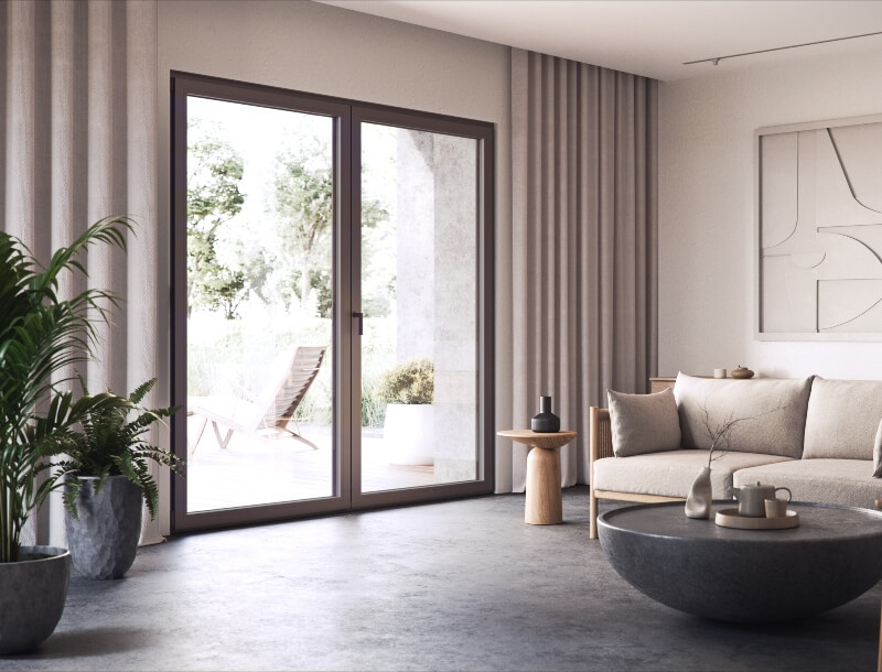 Jeśli zamiast drewnopodobnych odcieni okien wolisz minimalistyczne matowe odcienie, zainteresuj się matowym kolorem okien OKNOPLAST w okleinie S-bronze matt 476-6055. To wyjątkowo trwała okleina z odcieniu, który idealnie współpra z wnętrzami w kolorach ziemi.