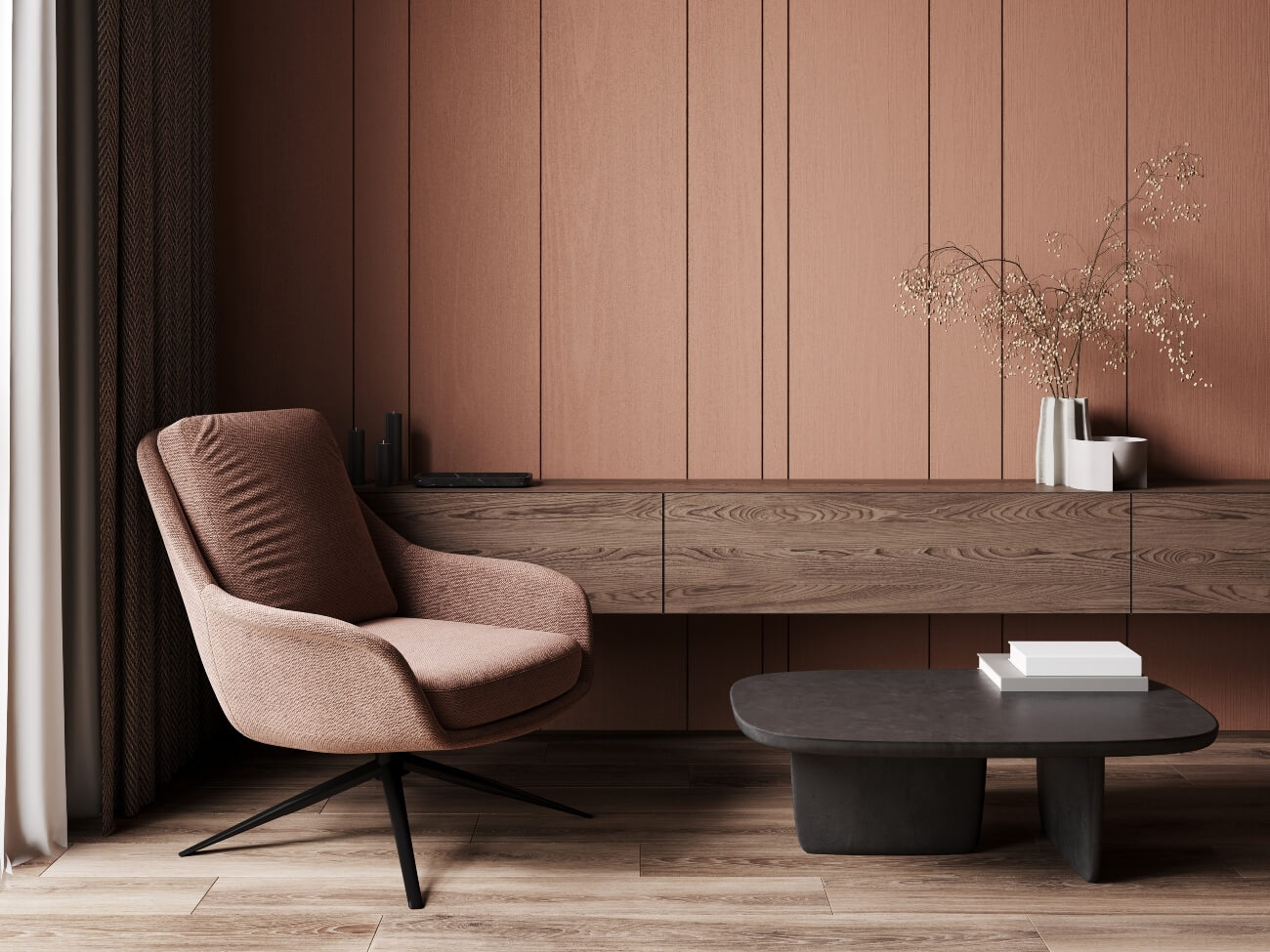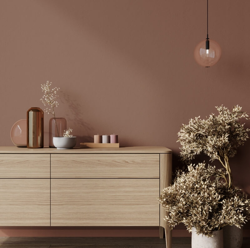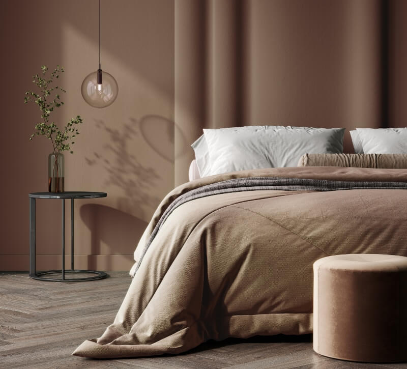 Ciepły brązowy odcień Pantone 17-1230 Mocha Mousse doskonale sprawdzi się w aranżacji wnętrz, nadając im przytulności, elegancji i harmonii. Możesz go zastosować na wiele sposobów i w różnorodnych stylach aranżacyjnych.