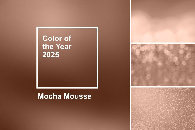 Ciepły brąz Mocha Mousse (PANTONE 17-1230) dodaje elegancji, harmonii i spokoju, dobrze łącząc się z beżami, oliwkową zielenią, złotem i pastelami.