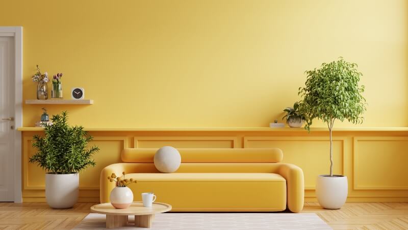 Słoneczny Hello Yellow wnosi energię i optymizm, inspiruje do kreatywności i świetnie komponuje się z neutralnymi barwami, drewnem oraz głębokimi zieleniami i granatami.