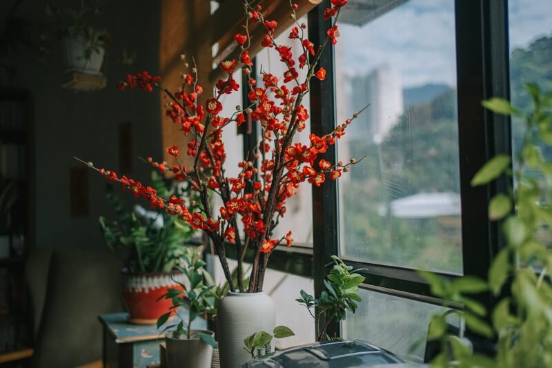 Jak szybko udekorować wiosennie okno i parapet? Jeśli głównym kryterium jest czas poświęcony na stworzenie ozdoby okiennej, zdecydowanie warto postawić na kwitnące gałęzie drzew owocowych. Gałązki możesz kupić w kwiaciarni lub uciąć z drzew owocowych we własnym ogródku. Po ich wstawieniu do naczynia z wodą wystarczy kilka dni, aby pokryły się delikatnymi, wiosennymi kwiatami. Zaletą tego rozwiązania jest również wspaniały zapach, który wypełnia pomieszczenie.