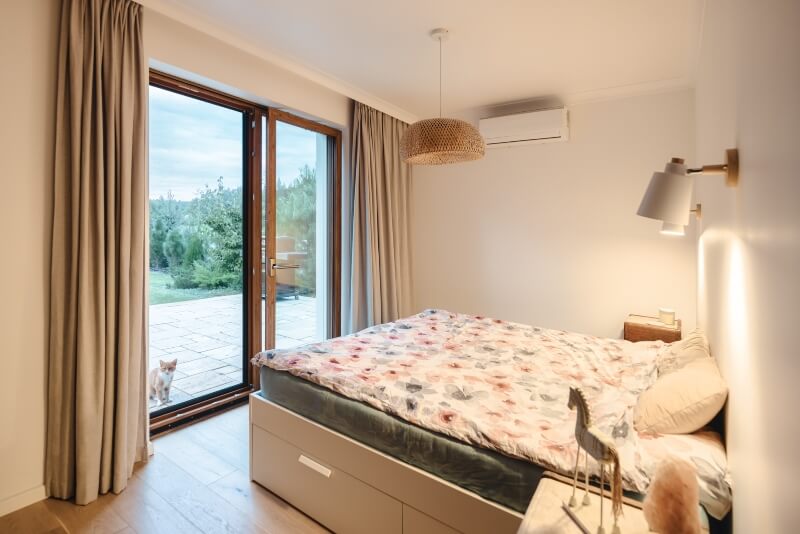 Zdalne sterowanie z poziomu smartfona, poprawia komfort użytkowania i wpisuje się w nowoczesne trendy inteligentnego domu. W tym projekcie architekci zdecydowali się na wykorzystanie żaluzji podtynkowych, ale w ofercie OKNOPLAST znajdują się również żaluzje fasadowe NODIO w wersji natynkowej.