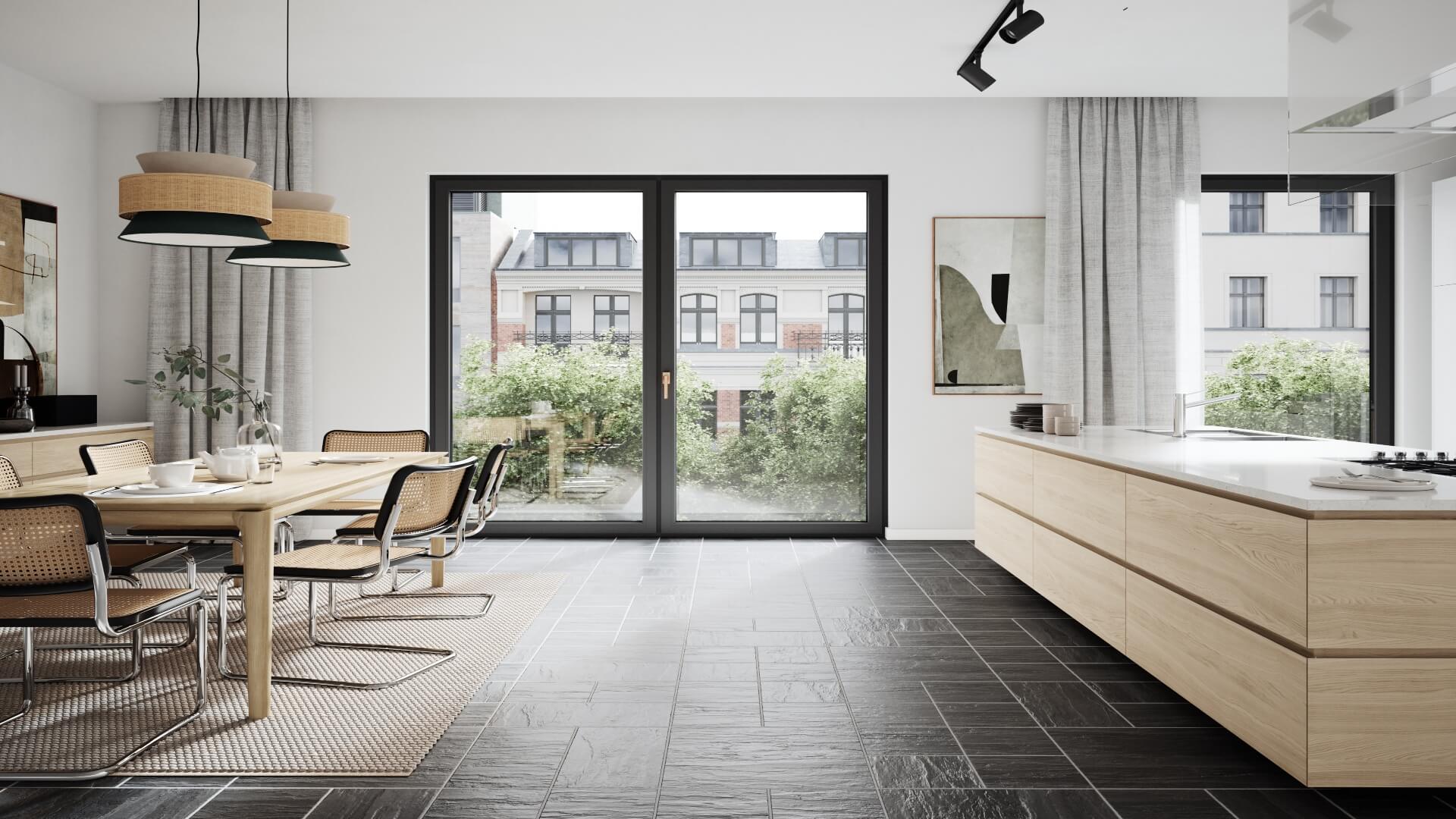 Okna Winergetic Standard to model łączący najnowsze rozwiązania technologiczne dotyczące termoizolacyjności oraz ochrony przed hałasem z klasycznym wyglądem. Miłośników designu urzekają prostym profilem bez zaokrągleń, który doskonale komponuje się zarówno z nowoczesnymi i minimalistycznymi, jak również z tradycyjnymi budynkami mieszkalnymi i ich wnętrzami. W oknach z tej serii z kolorową okleiną stosujemy tzw. zgrzew na nitkę w narożnikach ram i skrzydeł. W efekcie miejsce ich łączenia jest niemal niewidoczne. Okna Winergetic Standard wyposażone są w nowoczesną klamkę dESIGN+, dzięki której podkreślony zostaje ich minimalistyczny charakter. Walory estetyczne w tym modelu można zwiększyć, decydując się również na tzw. niewidoczne zawiasy Winkhaus ProLight Select, które dodatkowo podnoszą szczelność stolarki i ułatwiają jej czyszczenie.