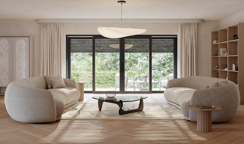 - Żaluzje fasadowe – pozwalają precyzyjnie regulować kąt padania światła bez konieczności całkowitego zasłaniania okna. Je również można połączyć z systemem inteligentnego domu.