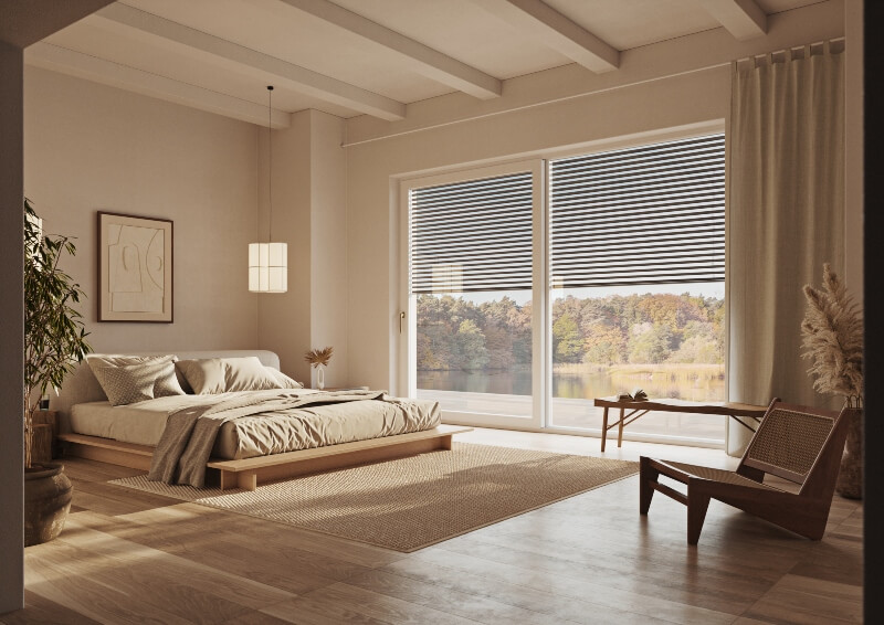 Nie możesz zamontować osłon zewnętrznych? Pomocne w walce z upałem mogą być wspomniane zasłony zaciemniające, a także rolety rzymskie, rolety dzień-noc, rolety plisowane czy żaluzje drewniane lub aluminiowe z warstwą odbijającą promieniowanie cieplne. Chociaż efekt w ich przypadku będzie słabszy niż przy roletach i żaluzjach zewnętrznych, upał dzięki nim będzie mniej uporczywy.