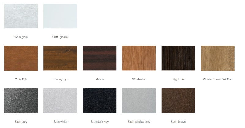 Woodgrain to delikatnie wypukłe wykończenie segmentów bramy imitujące usłojenie naturalnego drewna. Doskonale sprawdzi się w wersji lakierowanej. Glatt natomiast oznacza zupełnie gładką powierzchnię i wybierany może być w modelach zarówno lakierowanych, jak również okleinowanych.