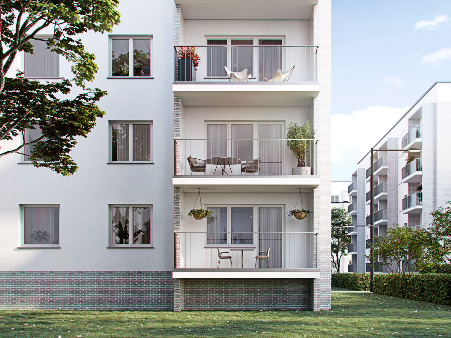 Nowoczesny blok mieszkalny o jasnej, minimalistycznej elewacji, wyposażony w stylowe okna PIXEL w kolorze white matt. Przestronne drzwi balkonowe oraz okna z systemu PIXEL zapewniają doskonałe doświetlenie wnętrz, jednocześnie gwarantując wysokie parametry izolacji termicznej i akustycznej. Estetyka okien PIXEL doskonale komponuje się z nowoczesnym charakterem budynku, a ich funkcjonalność podkreślają niezawodne okucia WINKHAUS ACTIVPILOT CONCEPT. Prosta forma i eleganckie wykończenie sprawiają, że budynek prezentuje się harmonijnie i stylowo, oferując mieszkańcom komfort i nowoczesny design.