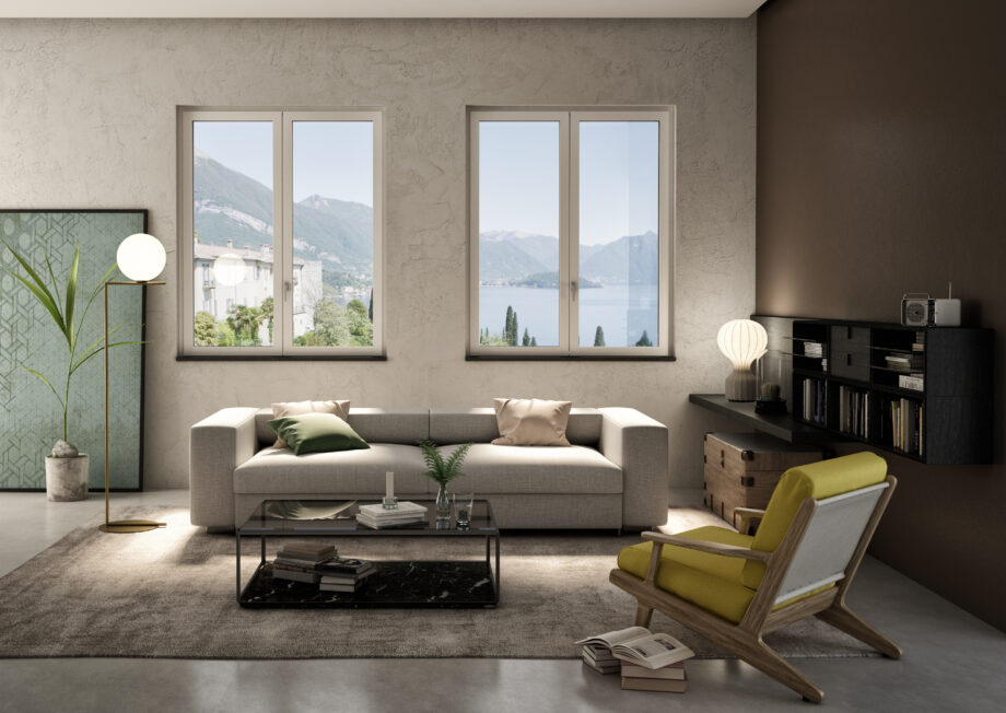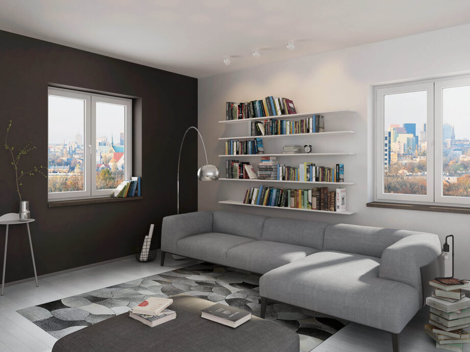 Salon z oknami balkonowymi PRISMATIC w kolorze białym
