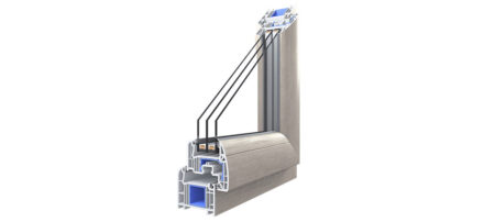 6-komorowe profile w klasie A o głębokości zabudowy 70 mm (rama) i 74 mm (skrzydło).