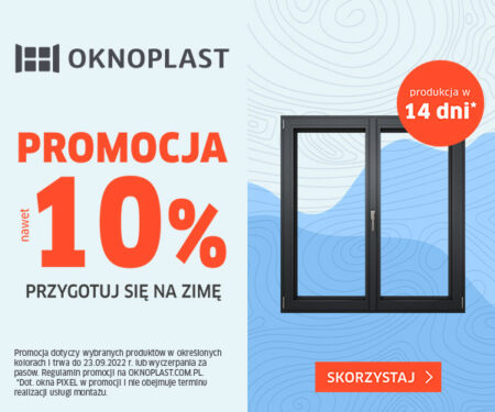 Teraz wybrane modele okien kupisz z dodatkowym rabatem 10% Od 9 września do 23 września 2022 roku trwa Jesienna Promocja OKNOPLAST, podczas której klienci mogą kupić wybrane systemy okienne i wybrane drzwi tarasowe z upustem sięgającym nawet 10%!