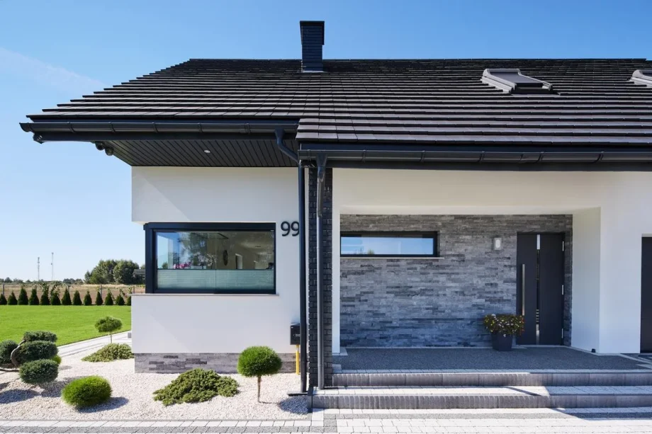 W tej rezydencji w Jaroszówce zdecydowano się na stolarkę okienną PIXEL – delikatną, nowoczesną i funkcjonalną. Zastosowano ją świadomie, by podkreślić charakter budynku, jednocześnie zapewniając komfort użytkowania.