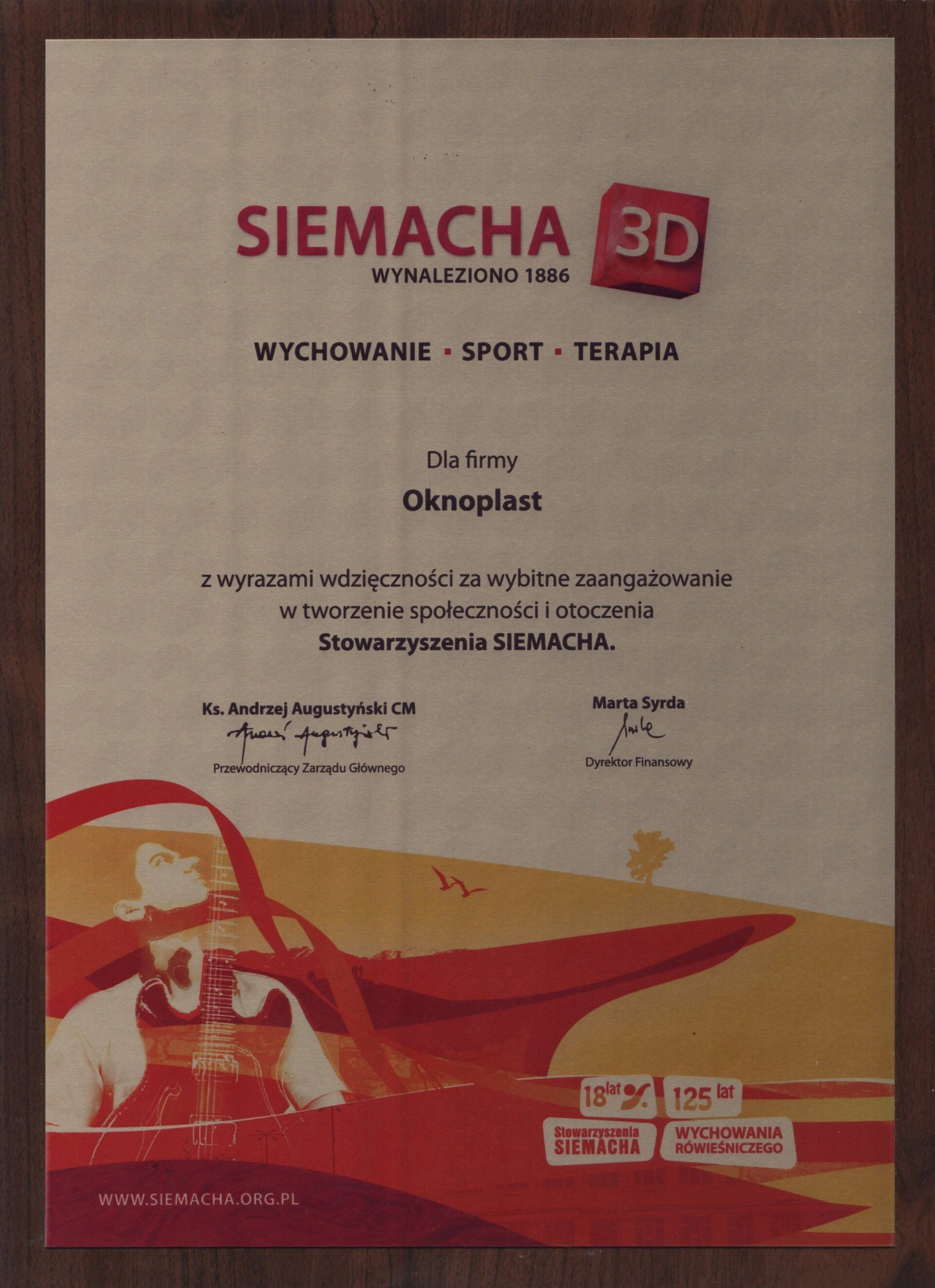 Stowarzyszenie „U Siemachy” wspiera dzieci i młodzież w trudnej sytuacji życiowej. Organizacja angażując wychowanków w długotrwałe projekty edukacyjne i kulturalne, pomaga im zdobyć umiejętności zawodowe i społeczne. W październiku Siemacha obchodził 18 – lecie działalności. Z tej okazji, w Domu ks. Siemiaszki przy ul. Długiej 42 odbyło się uroczyste przyjęcie dla wychowanków, pracowników i partnerów. Wśród zaproszonych gości byli też Premier Donald Tusk oraz kardynał Franciszek Macharski. Jesteśmy szczęśliwi mogąc świętować ten ważny jubileusz razem ze Stowarzyszeniem „U Siemachy”. W ciągu 18 lat organizacja pomogła wielu młodym ludziom. Cieszymy się, że mogliśmy w tym uczestniczyć. – mówi Adam Placek, Założyciel OKNOPLAST.